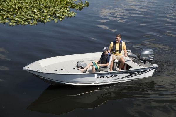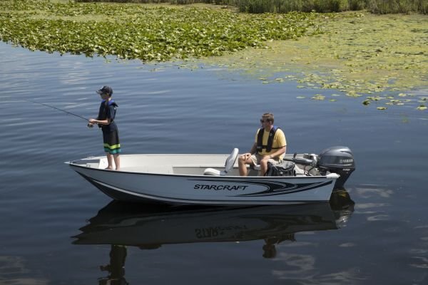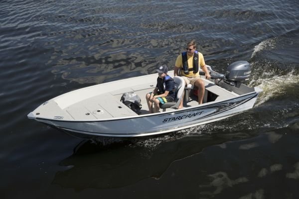 | The Starcraft Patriot 14 TL offers every essential in an easy-to-trailer package that fits in most standard garages. This aluminum utility boat is a tiller with two wood-free fishing seats and raised bow casting platform. |
