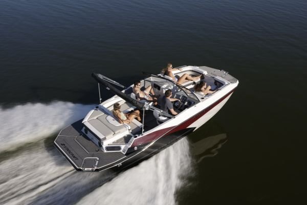 MISCELLANEOUS Docking Lights Bow Filler Cushions Anchor Kit RGB Color Changing LED Light Kit (Cupholders/Speakers/Underwater/Courtesy) Wake Tower Drop Down Curtain with Porta Potti JL Audio MM50 Stereo with Bluetooth Pressurized Water System Removable Ski Pylon Deck Mounted Ski Tow Stainless Steel Rub Rail Table & Base