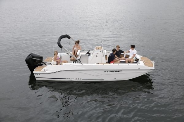 The Starcraft Marine Fiberglass Center Console SVX 211 CC deck boat stands out as the ultimate choice for fishing, and family recreation, providing abundant seating and generous storage for all essential gear. With its enduring build and adaptable design, it's the ideal vessel for creating cherished memories on the water with your loved ones.