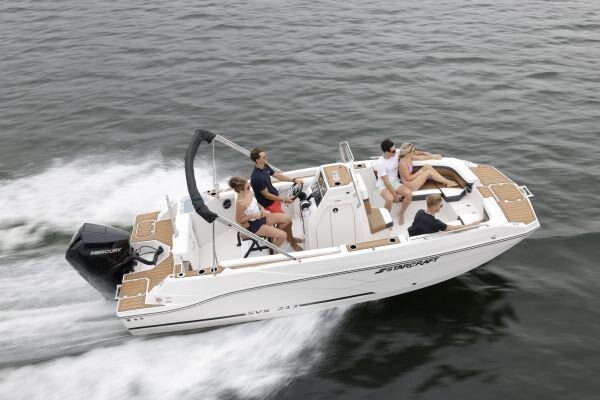 The SVX series proves that fun on the water doesn't have to come with a big price tag. SVX CC's comes loaded with value, including a spacious head unit, a bimini top for sun protection and EVA Soft Touch Traction Mat flooring in the bow and stern-all standard.