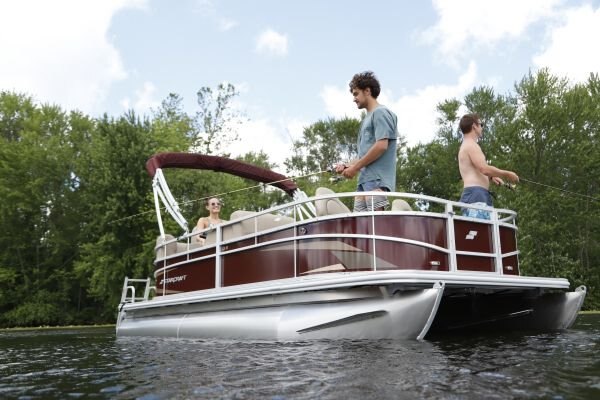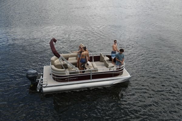| Built for affordability and all-day fun, the Starcraft LX 18 F aluminum pontoon boat offers a winning combination of fishing functionality and comfortable relaxation. Protection from the sun is assured with a standard bimini top, keeping you cool and comfortable throughout your adventure. The driver captains the vessel from a low-back bucket helm seat, providing control and visibility during navigation. Re-entering the boat after a refreshing swim is a breeze thanks to the convenient rear entry ladder. Anglers are well-catered to with front fishing seats, perfect for casting lines and reeling in the catch. For added convenience, a front livewell cleverly built into an ottoman keeps your baitfish healthy and ready for action. The back of the boat features comfortable lounge seating, ideal for relaxing companions who can enjoy the scenery while you focus on fishing or simply soak up the sun. With its focus on affordability, functionality, and comfortable seating, the Starcraft LX 18 F pontoon boat is the ideal choice for creating fun and memorable days on the water. |