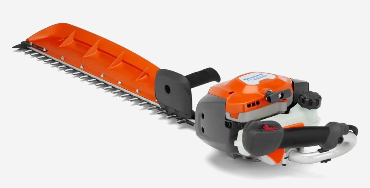 Single-sided hedge trimmer equipped with leaf catcher and long cutter barA 21.7cc, single-sided hedge trimmer with a 30" cutter bar for trimming jobs. Equipped with a leaf catcher for less clean-up. The comfortable handle with optimized weight distribution and impressively low weight combined with the slim, balanced design and low vibration levels provide excellent handling, while the high capacity, high-speed professional knife blade and impressive power output allows for excellent cutting performance. |