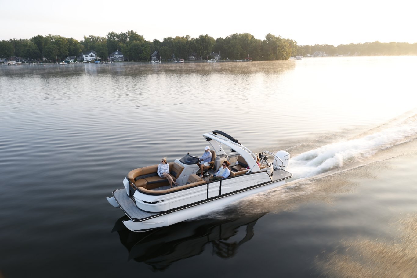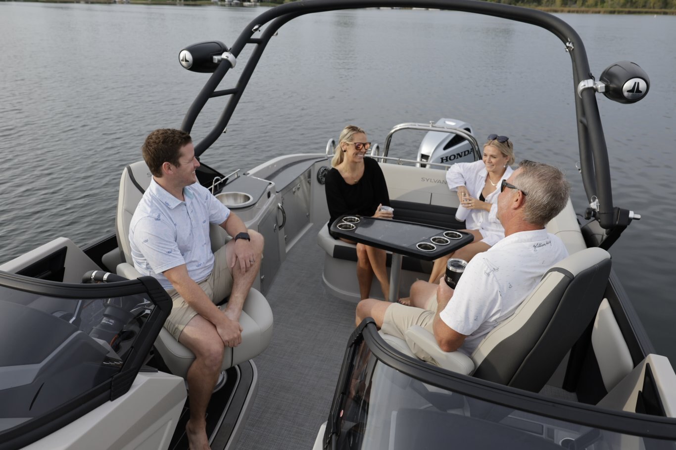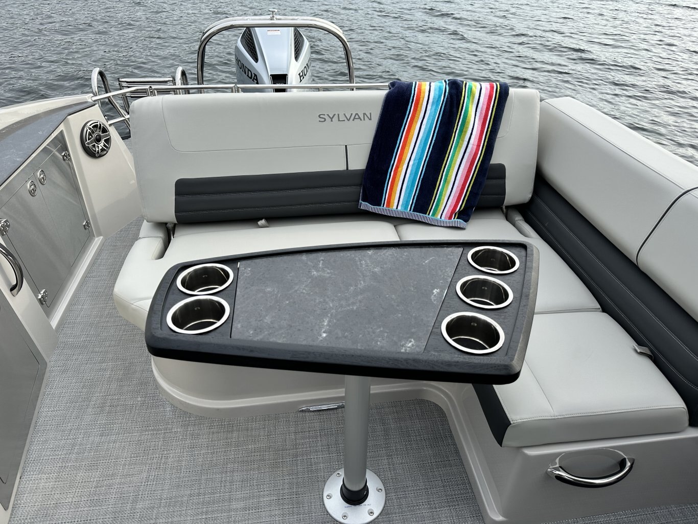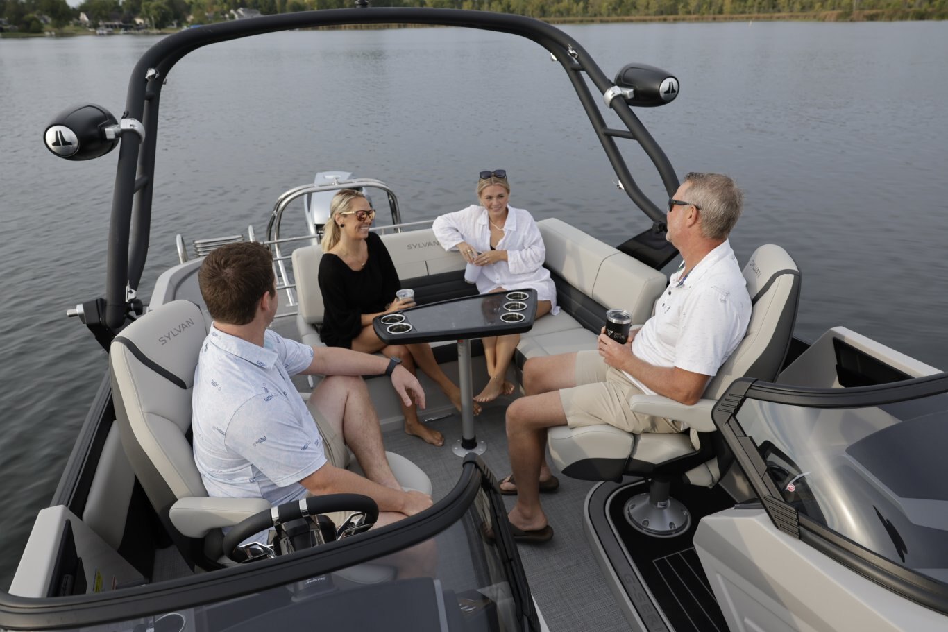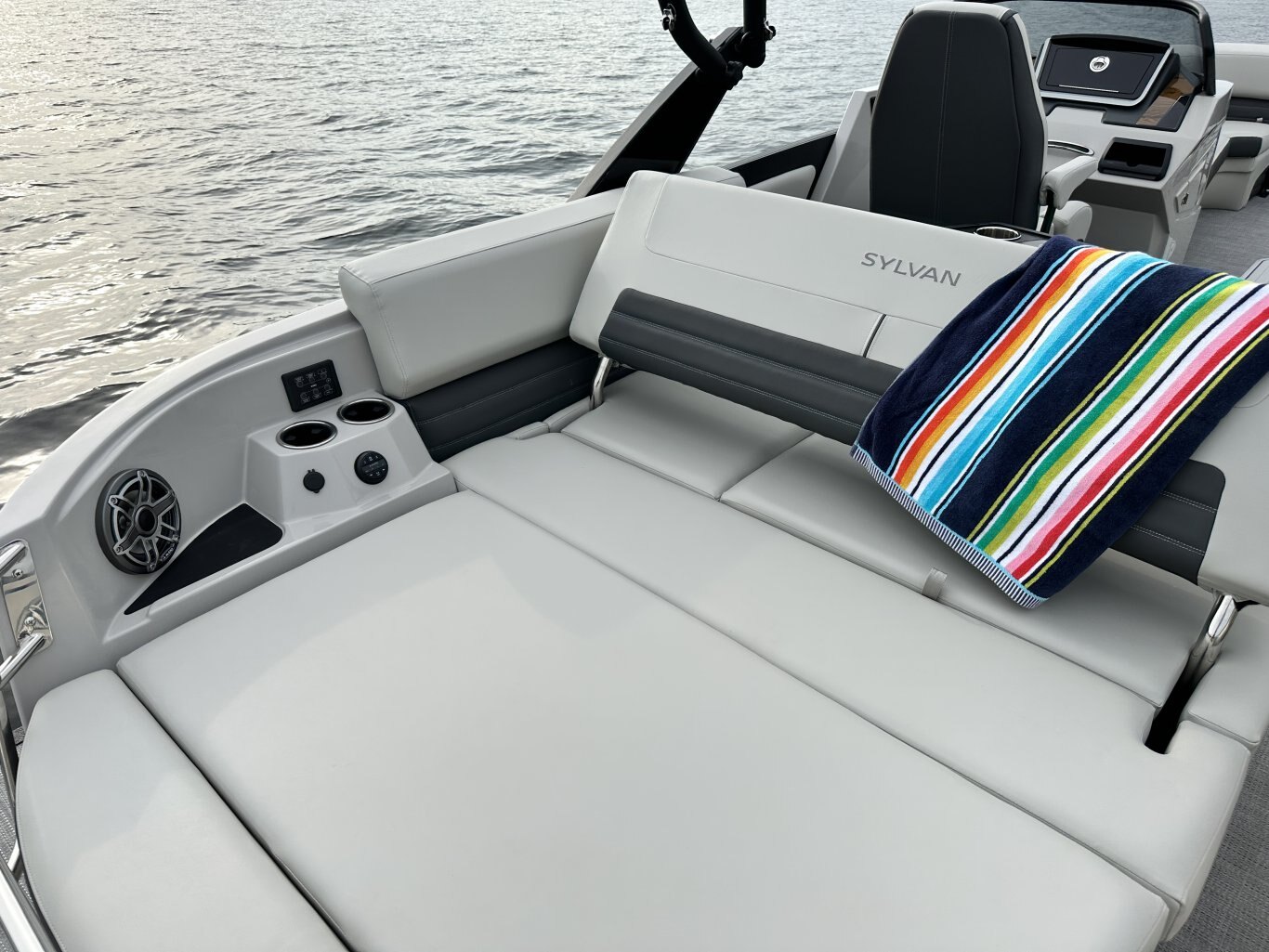 The G5 CLZ DC by Sylvan Pontoon sets the standard for luxury on the water, boasting a distinctive layout that's sure to please the entire family. At the stern of this opulent pontoon boat, you'll find a convertible flip-back rear lounge, ideal for leisurely sunset cruises or for providing a rear-facing vantage point to watch skiers. Moreover, Sylvan Pontoon's M-series offers premium features such as soft-touch upholstery, interior LED lighting, and side-by-side helm stations. With its exceptional design and top-of-the-line amenities, the G5 CLZ DC from Sylvan Pontoon is undoubtedly one of the finest pontoon boats available.