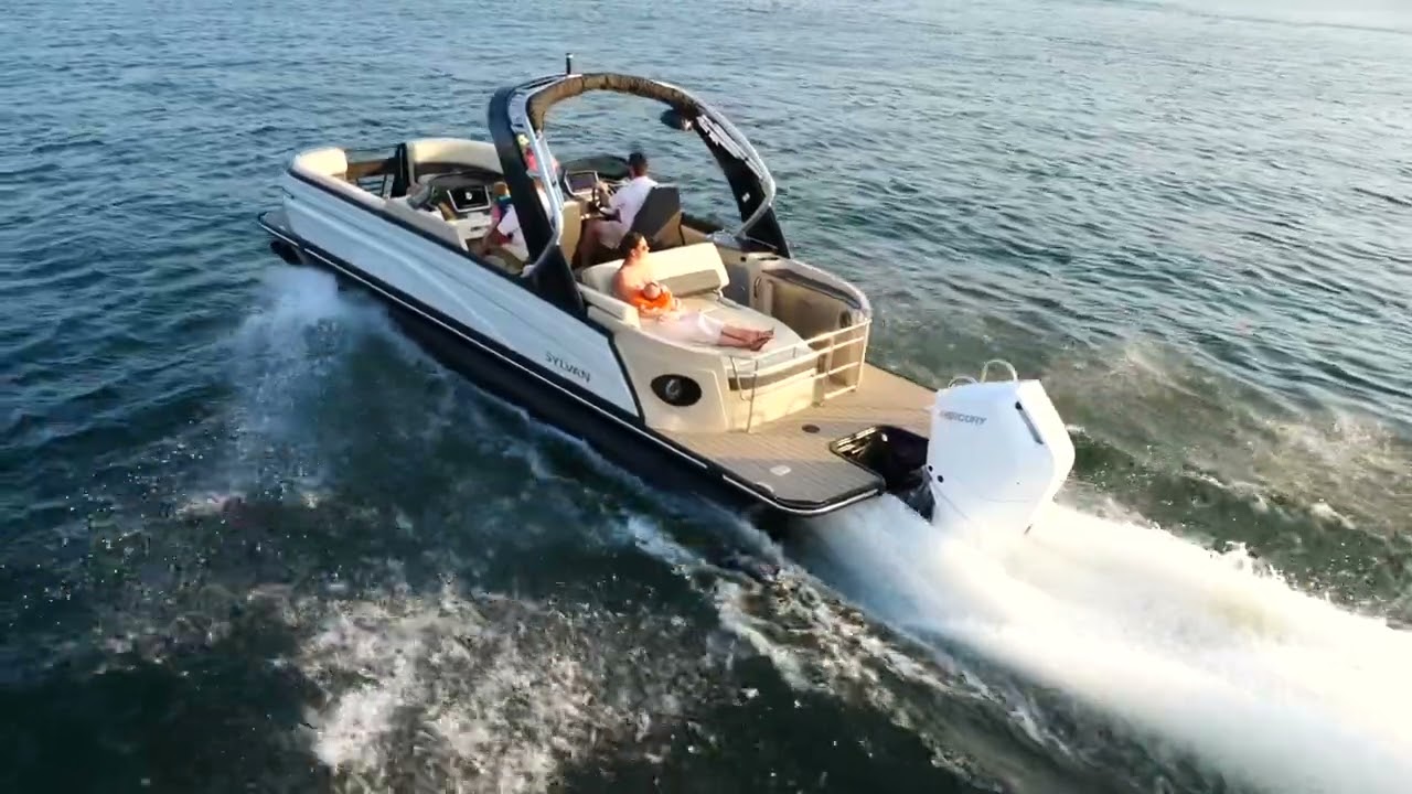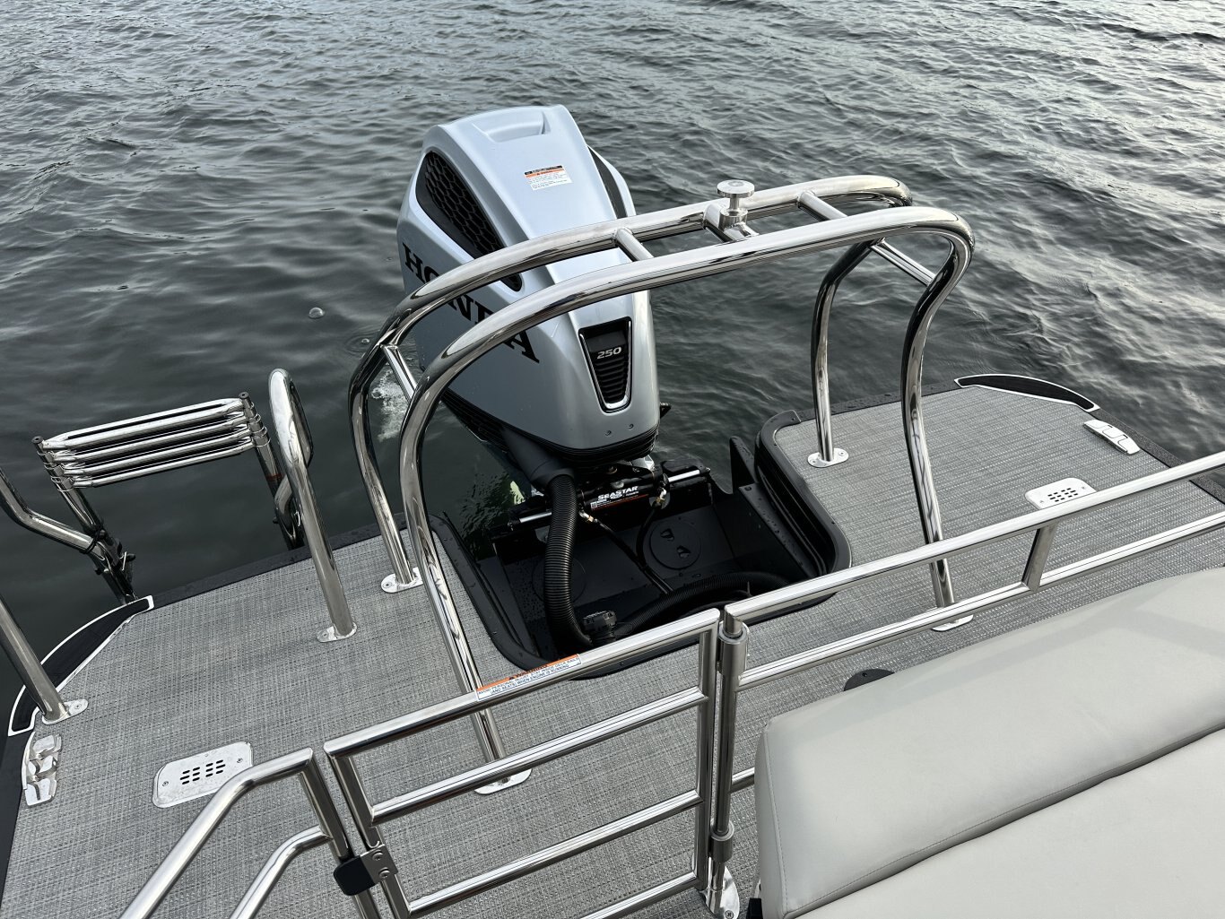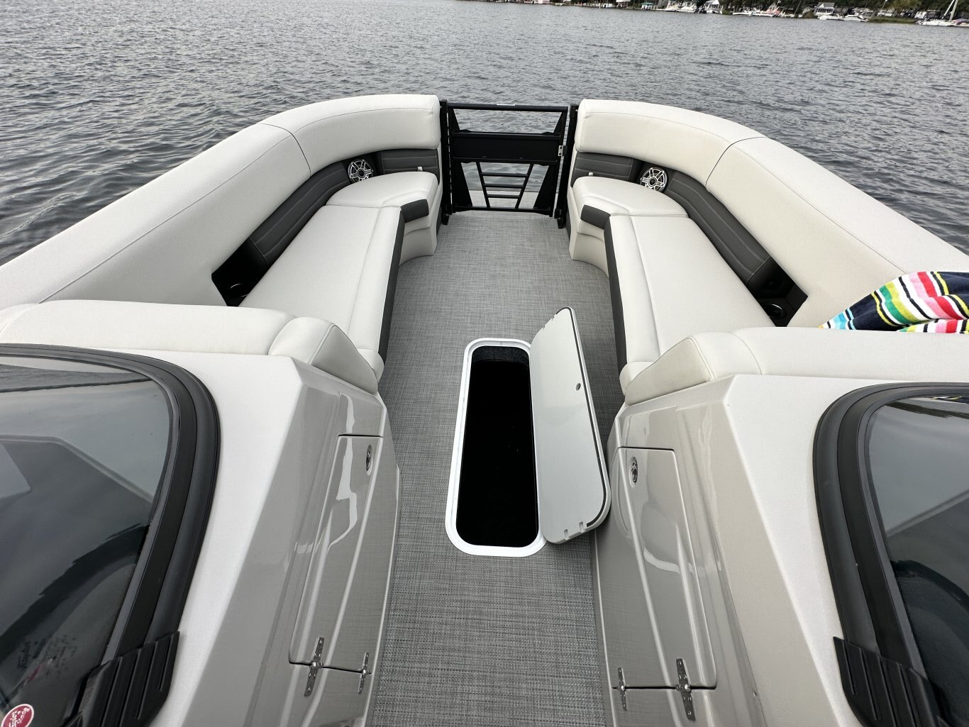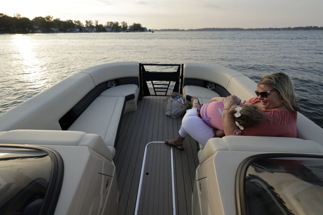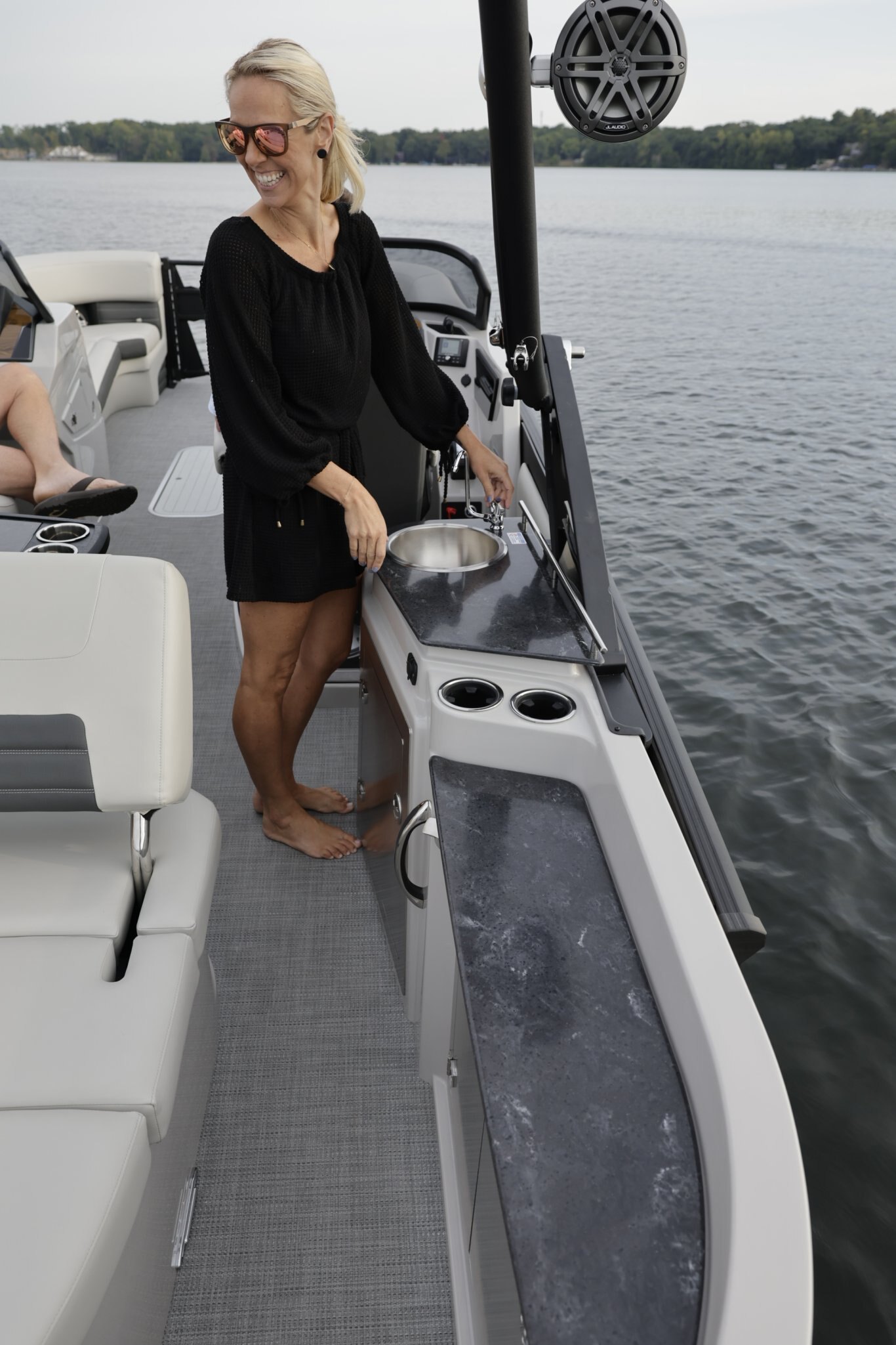 The G5 CLZ DC by Sylvan Pontoon sets the standard for luxury on the water, boasting a distinctive layout that's sure to please the entire family. At the stern of this opulent pontoon boat, you'll find a convertible flip-back rear lounge, ideal for leisurely sunset cruises or for providing a rear-facing vantage point to watch skiers. Moreover, Sylvan Pontoon's M-series offers premium features such as soft-touch upholstery, interior LED lighting, and side-by-side helm stations. With its exceptional design and top-of-the-line amenities, the G5 CLZ DC from Sylvan Pontoon is undoubtedly one of the finest pontoon boats available.